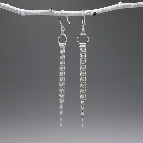 €5500Unit priceÁine Petite Hoop with Cascading Beaded Chain Silver Dangle Earrings