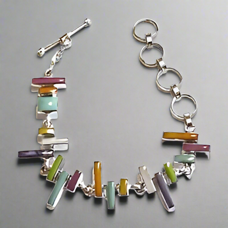 €12500Unit price /UnavailableSleveen Multi-Coloured Mosaic Opalescent Resin Silver Bracelet