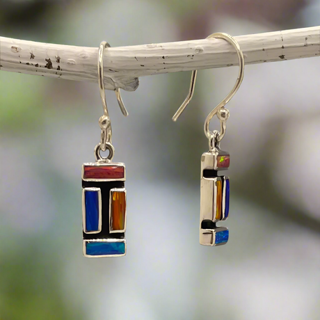 €27500Unit price /UnavailableSleveen Multi-Coloured Rectangle Mosaic Opalescence Resin Silver Dangle Earrings