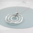 This striking pendant from the AYA Collection features an interlinked open-circle design, handcrafted in solid .950 sterling silver and polished to a mirror-finish. Sculptural yet understated, its layered form adds movement and dimension, making it an ideal piece for those who favour bold simplicity.