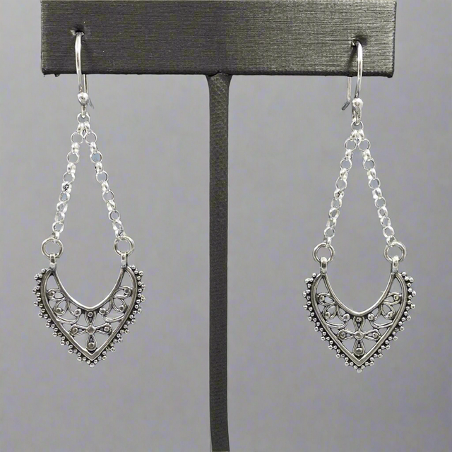 Croí Ornate Heart on Chain Silver Dangle Earrings is backordered and will ship as soon as it is back in stock.