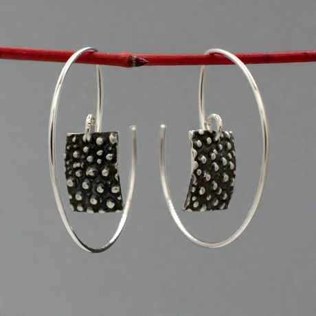 €6800Unit price /UnavailableFirmament Small Rectangle Oxidised Reverse Silver Hoop Earrings