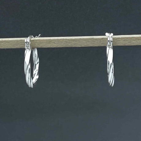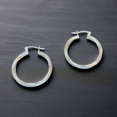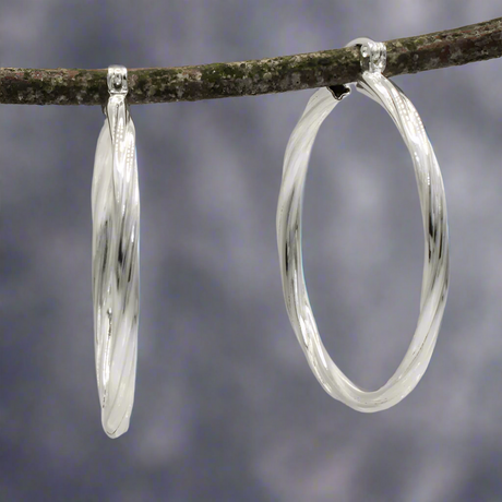 Lupita Large Twisted Patterned Silver Hinged Hoop Earrings