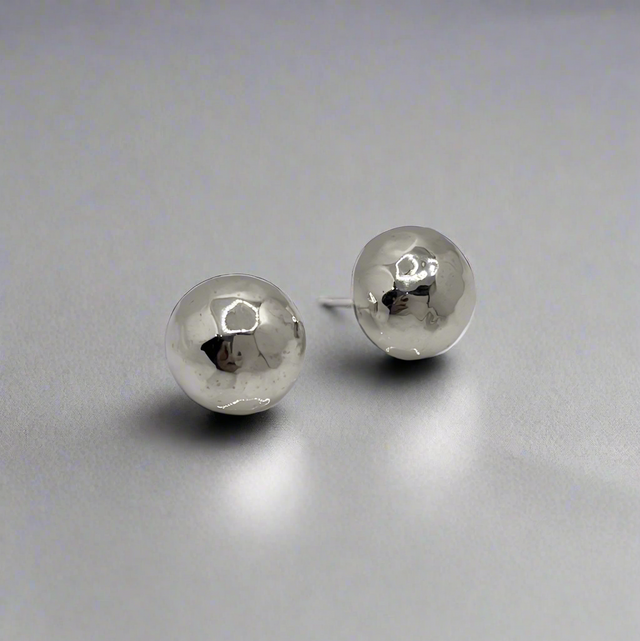 Elevate your collection with our Artemis Dome Hammered Silver Earrings. Crafted from .925 sterling silver, these stud earrings feature a striking hammered finish that adds texture and sophistication to any outfit.