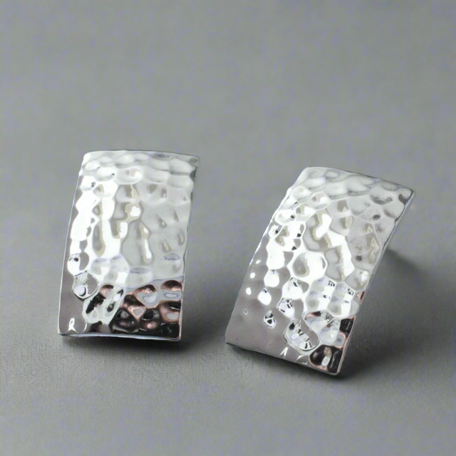 Crafted in .950 sterling silver, our Artemis Rectangle Hammered Silver Earrings bring a touch of bold elegance to your style. These rectangular studs feature a striking hammered finish, perfect for everyday wear or a night out.