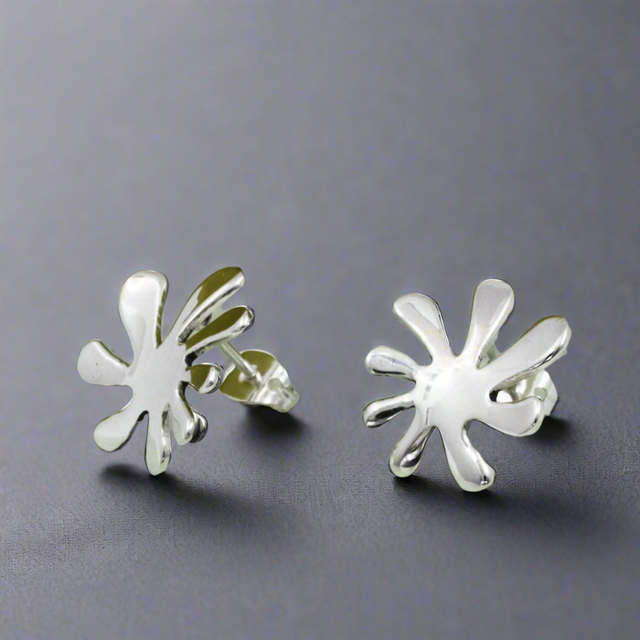 The Móinéir Small Urban Flower Silver Stud Earrings bring together clean floral lines and contemporary silverwork. Handcrafted in solid .950 sterling silver and finished with a high-polish sheen, these flower-shaped studs are lightweight, easy to wear, and effortlessly stylish.