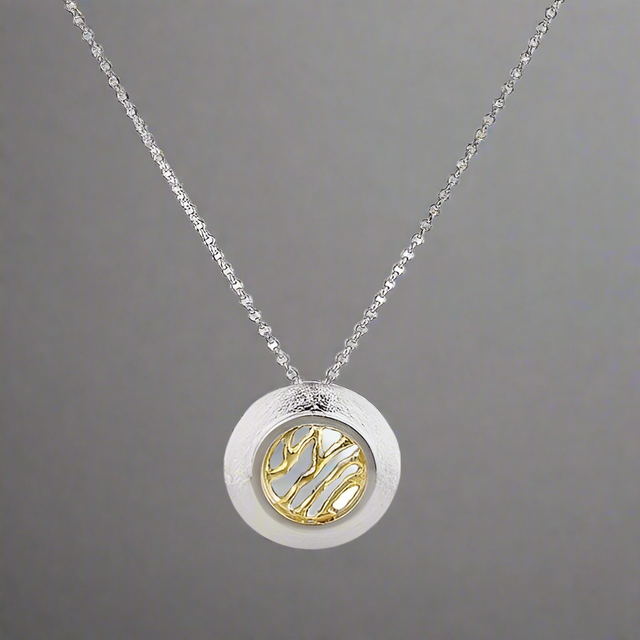 Medium Woven Silver Pendant with 18ct Yellow Gold Vermeil