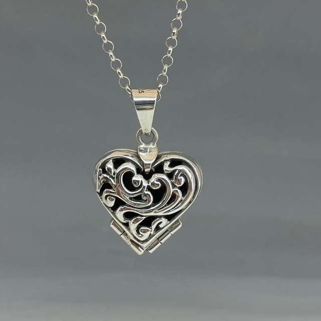 Handcrafted with care using the lost wax technique, this sterling silver locket features a stunning heart design adorned with intricate baroque details. Its polished and oxidised finish highlights the artistry, while the locket unfolds into a 4-petal clover, designed to hold 4 cherished photos close to your heart.