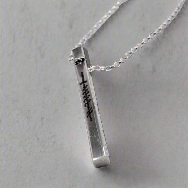 Éire Wild Atlantic Way and Ogham ‘Grá’ Inscription Silver Bar Pendant