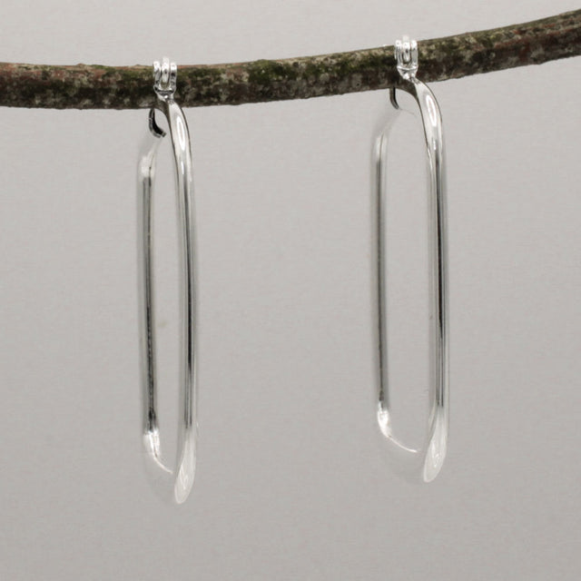 Designed with a secure hinged closure, these handmade silver hoops are comfortable, lightweight, and easy to wear.