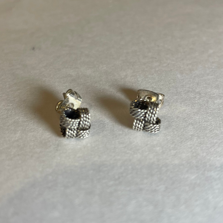 £9600Unit price /UnavailableAran Tiny Cross Woven Oxidised Twisted Wire Silver Stud Earrings
