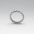 This unisex silver ring is a classic expression of Irish heritage, handcrafted with an intricate thread weave pattern that flows continuously around the band. The contrast between the light oxidised finish in the recessed lines and the polished surface gives the design depth and definition, catching the light with every movement.