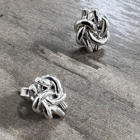 Inspired by the strength found in unity, the Aran Double Knot Silver Stud Earrings are handcrafted from solid sterling silver wire. Each earring features two sculpted interlocking knots, symbolising enduring connection. The polished finish brings a refined brightness to this traditional design, making it suitable for everyday wear or gifting.