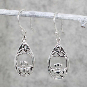 Celtic Claddagh with Trinity Drop Silver Dangle Earrings