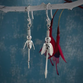 Móinéir Small Fuchsia Flower Silver Dangle Earrings