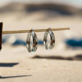 Order online or visit our jewellery store in Kinsale, Cork, to view these facetted silver hoop earrings in person.