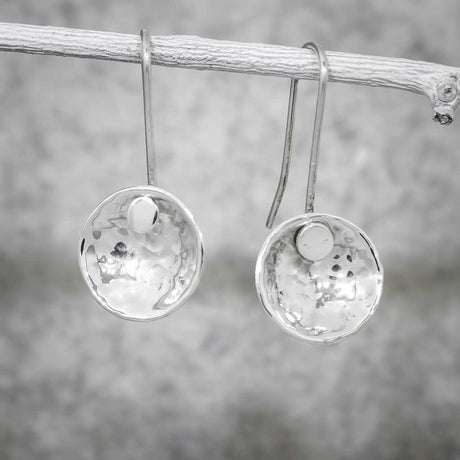 €8800Prix unitaireIndisponibleSaha Dapped Hammered Disc Silver Dangle Earrings on Long Earwire
