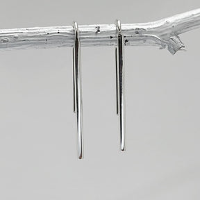 Crafted in solid sterling silver, the Selene Beacon Silver Dangle Earrings feature a slender, elongated form inspired by the steady glow of moonlight. Their sleek linear shape is finished with a mirror-like polish that catches the light beautifully, enhancing their clean, modern aesthetic.