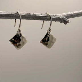 Artemis Small Rhombus Hammered Silver Dangle Earrings